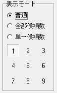 本ソフトに候補数の表示モードを三種類があります。1は普通、2は全部候補数、3は単一候補数