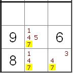 強リンクに対して、弱リンク(weak link)とは一行、一列或いは一ブロックにある数字が二つ以上のセルに含まられるのです.下図のようです.